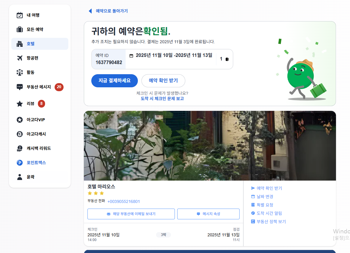 피렌체 호텔 마리오스 더블룸 * 3 = 247.98 * 3 = 743.94 유로