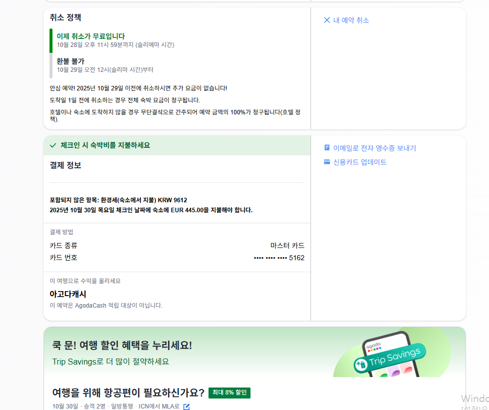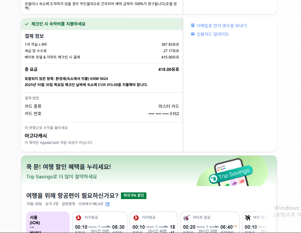 2025년 10월 30일 목요일 체크인 날짜에 1,275유로를 지불해야 합니다.